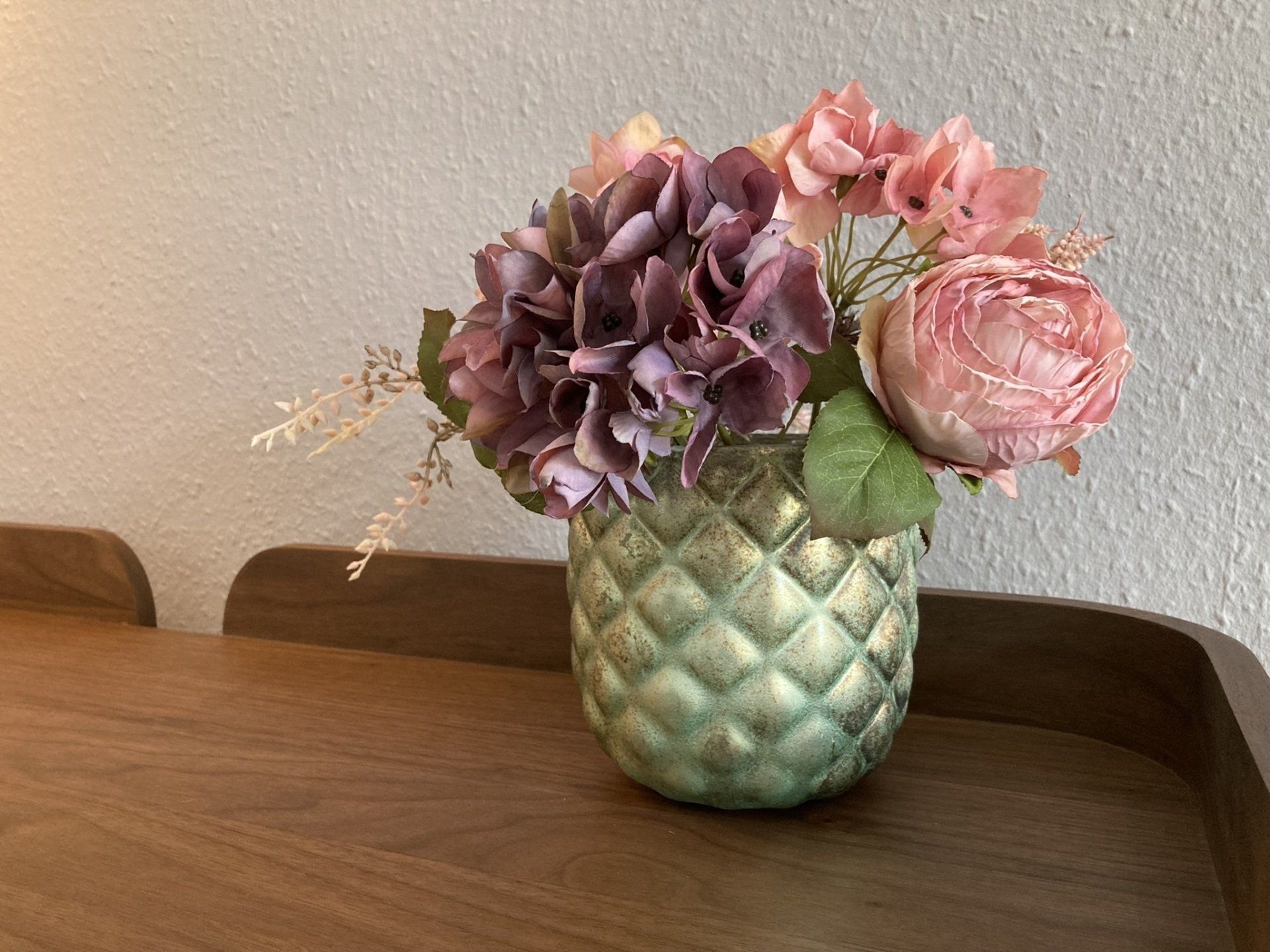 Der zeitlos-elegante Graulila-Ton der Wände vermittelt in Kombination mit warmen Holztönen und der Leichtigkeit von Weiß eine anziehende, ausgleichend-entspannende Zurückhaltung.